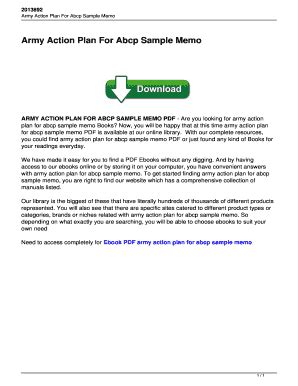 Read ARMY ACTION PLAN FOR ABCP SAMPLE MEMO Ebook PDF online is a convenient and frugal way to read ARMY ACTION PLAN FOR ABCP SAMPLE MEMO Ebook you love right from the comfort of your own home. Yes, there sites where you can get PDF "for free" but the ones listed below are clean from viruses and completely legal to use.