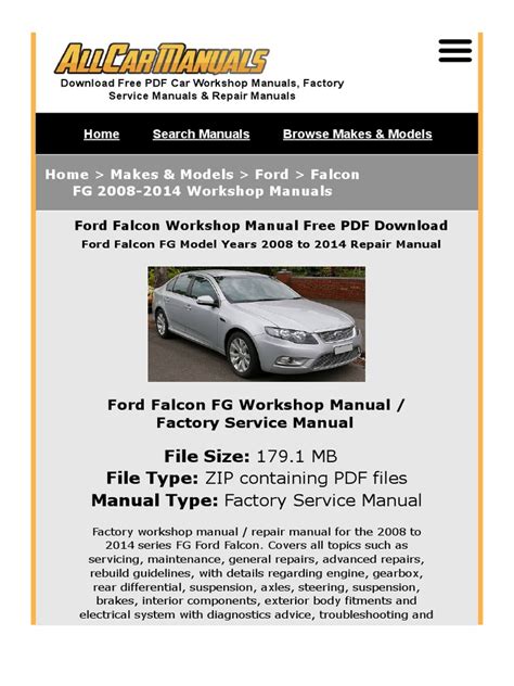 Download FG FALCON WORKSHOP MANUAL PDF Ebook Doc online is a convenient and frugal way to read FG FALCON WORKSHOP MANUAL PDF Ebook you love right from the comfort of your own home. Yes, there sites where you can get Doc "for free" but the ones listed below are clean from viruses and completely legal to use.