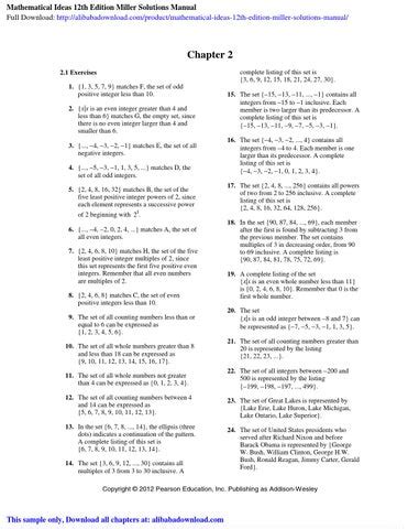 Read MATHEMATICAL IDEAS 12TH EDITION SOLUTIONS Ebook Kindle Editon