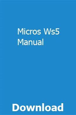 Read MICROS WS5 MANUAL Ebook Doc online is a convenient and frugal way to read MICROS WS5 MANUAL Ebook you love right from the comfort of your own home. Yes, there sites where you can get Doc "for free" but the ones listed below are clean from viruses and completely legal to use.